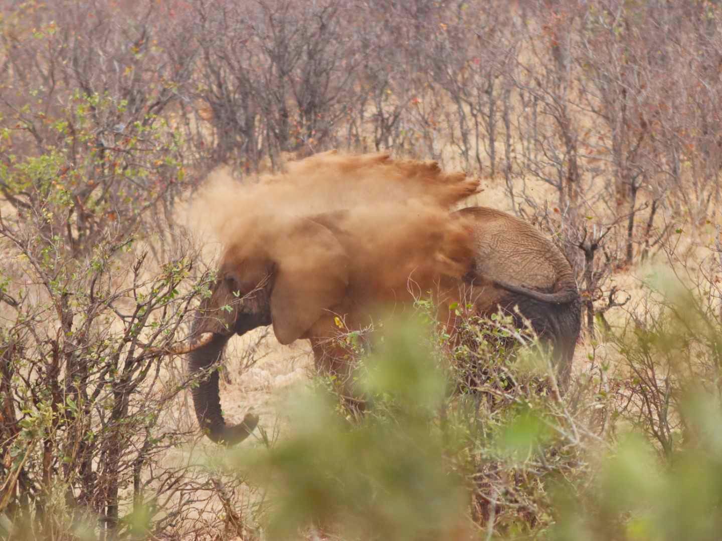 At 8:32 AM this morning, an elephant was sighted showering itself with sand along the S131. The sand acts as an insect repellent and protection from the sun. It also removes parasites and dead skin. Spa day Thursday!