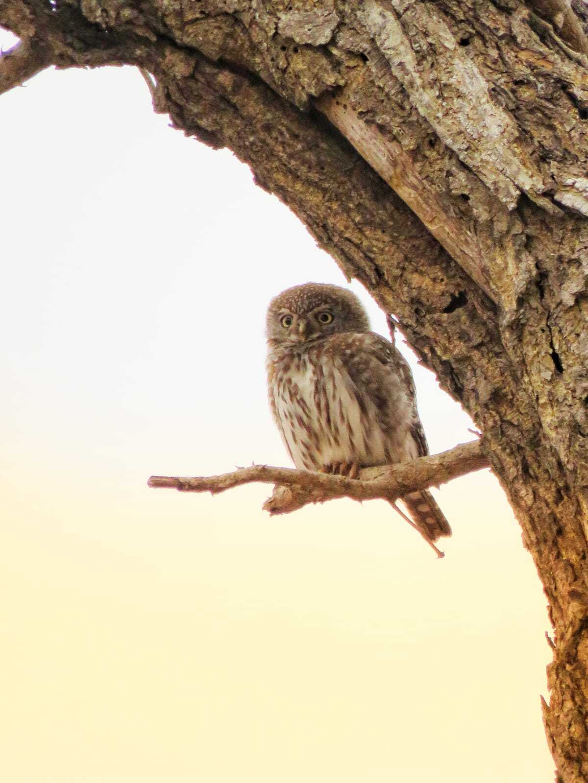 The cutest pearl-spotted owlet sitting on a tree branch, with its puffed streak chest and sharp yellow eyes. If you want to find out, you can keep track of everything on our app with real-time updates.