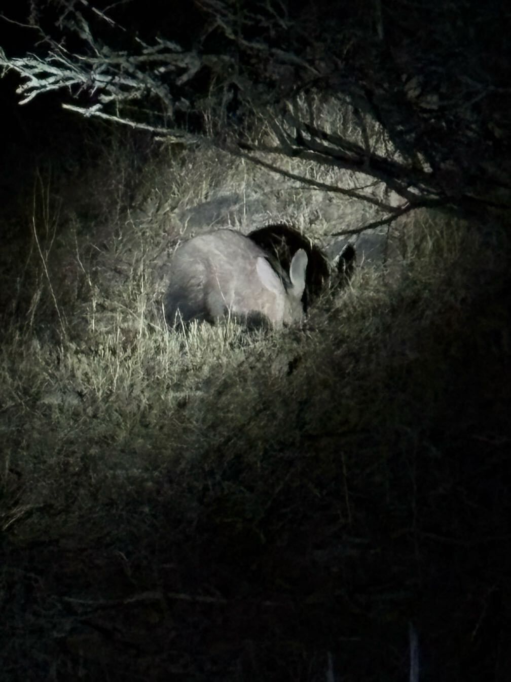 Last night an aardvark was caught in the spotlight at night, busy digging into the ground with its powerful claws searching for termites to snack on. A rare sighting indeed.