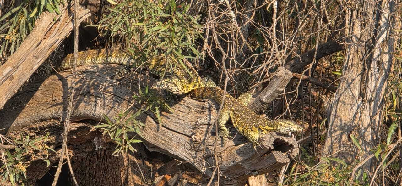 Basking Nile monitor lizards! They are excellent swimmers and are usually found near rivers, lakes, and wetlands, though they also spend time on land basking or climbing trees. Awesome sighting for those reptile lovers.