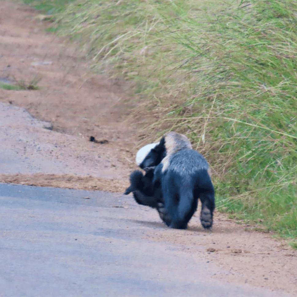 This absolutely incredible sighting of a honey badger carrying her older pup away on Kubu Drive came as a surprise to everyone: