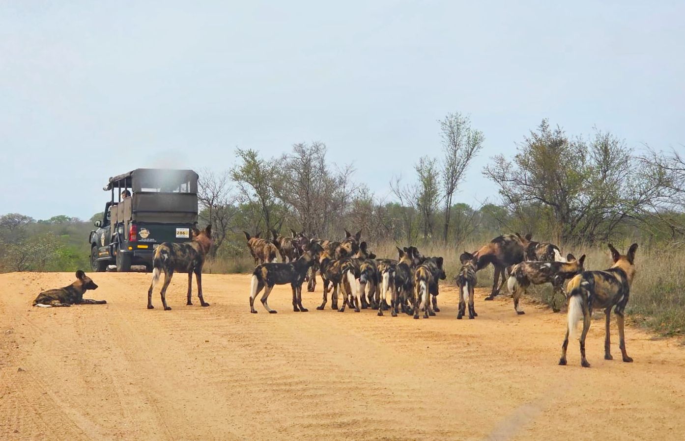 Over Twenty Wild Dogs Cause Excitement on Morning Drive