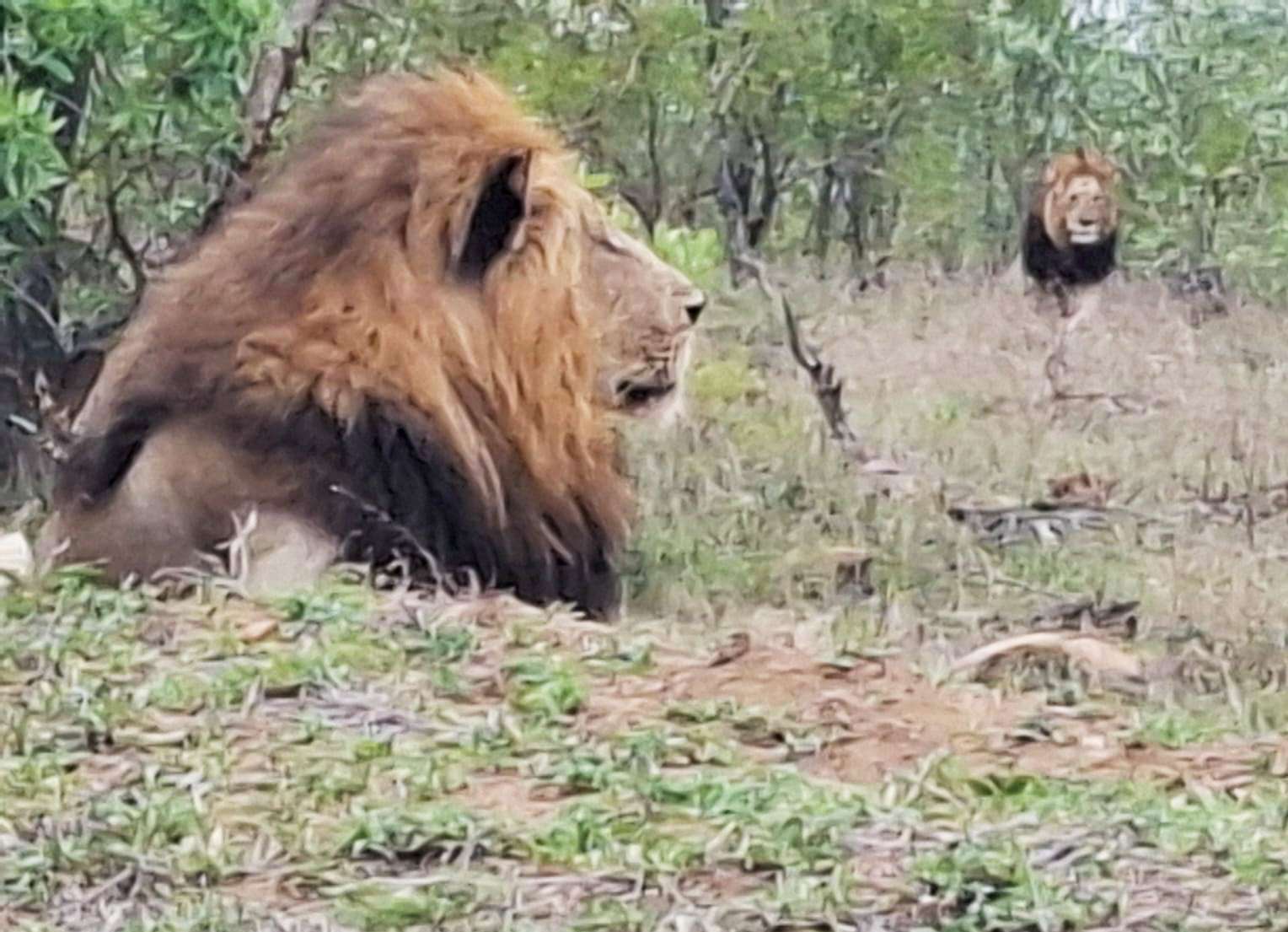 Seven lions were seen stationary on the S114, 800 metres north of the S118 at 8:20 AM. The tinger mentions that the two males were seen with five females. To stay informed, you can track everything on our app with real-time updates.